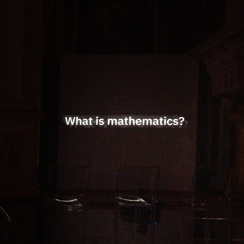 Il flusso di immagini si intercala ad una conversazione che sembra mettere a confronto l’uomo e la macchina. Che cosa è il nulla? Che cosa sono l’unità, la simmetria, la bellezza? Che cos’è la matematica? E’ possibile per l’uomo trovare risposte ad interrogativi primordiali mediati dalla logica dell’intelligenza artificiale? E soprattutto che cosa significa creare?