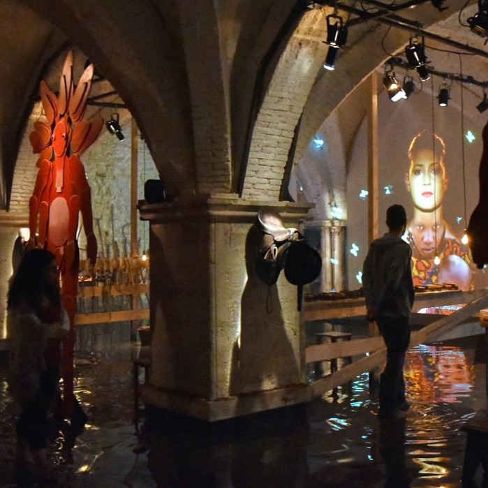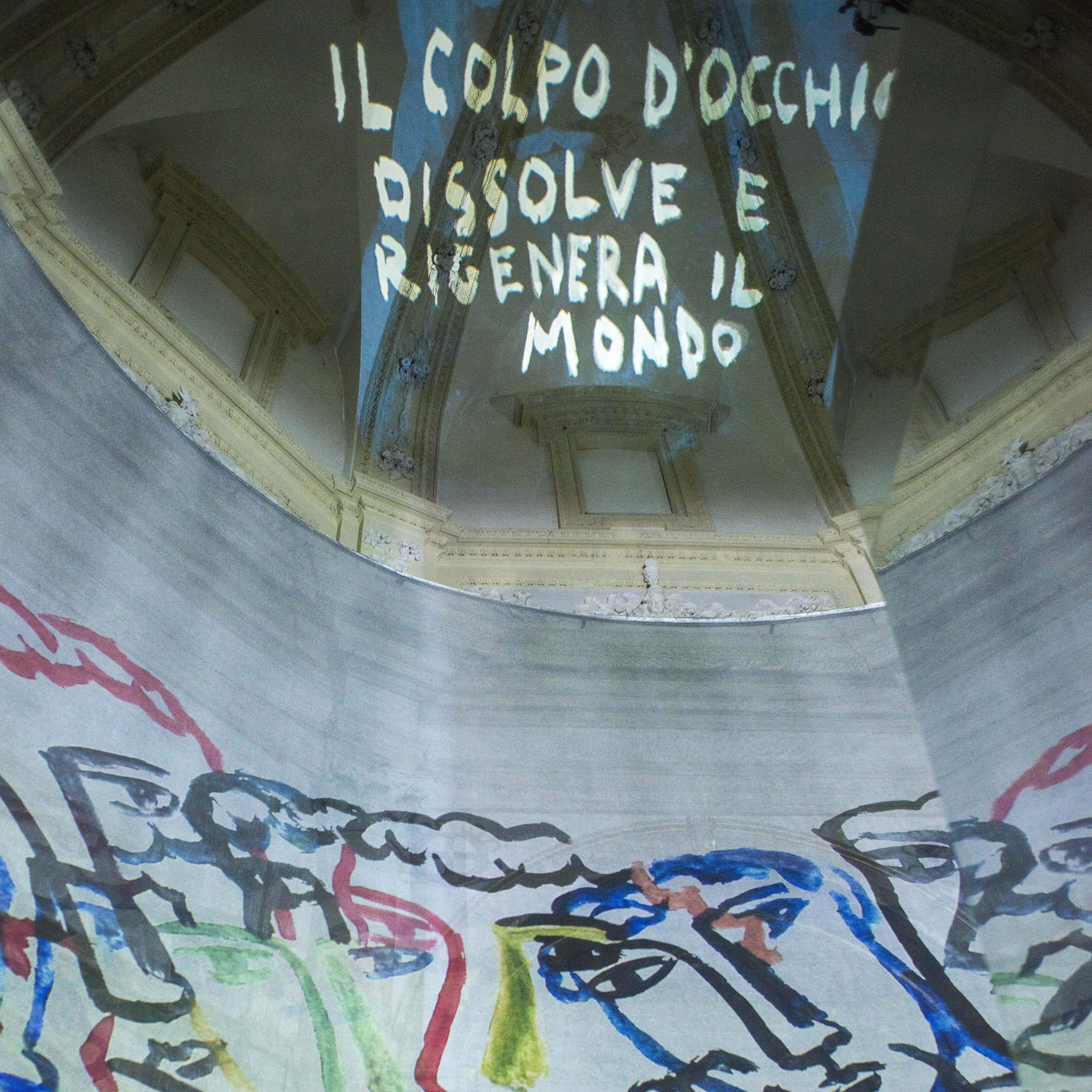 Le due installazioni sono state precedute da un’unica performance introduttiva. Sul palcoscenico del Teatro Caio Melisso Carla Fendi, Massimo Cacciari e Erri De Luca hanno dialogato sulla sostanza di questa doppia esperienza, legati da un file rouge condotto dalla storica dell’arte Lea Mattarella e intervallati da momenti musicali di forte spiritualità affidati alla voce solista di Raiz, alla virtuosità di Giovanni Sollima e ai canti di Divna.