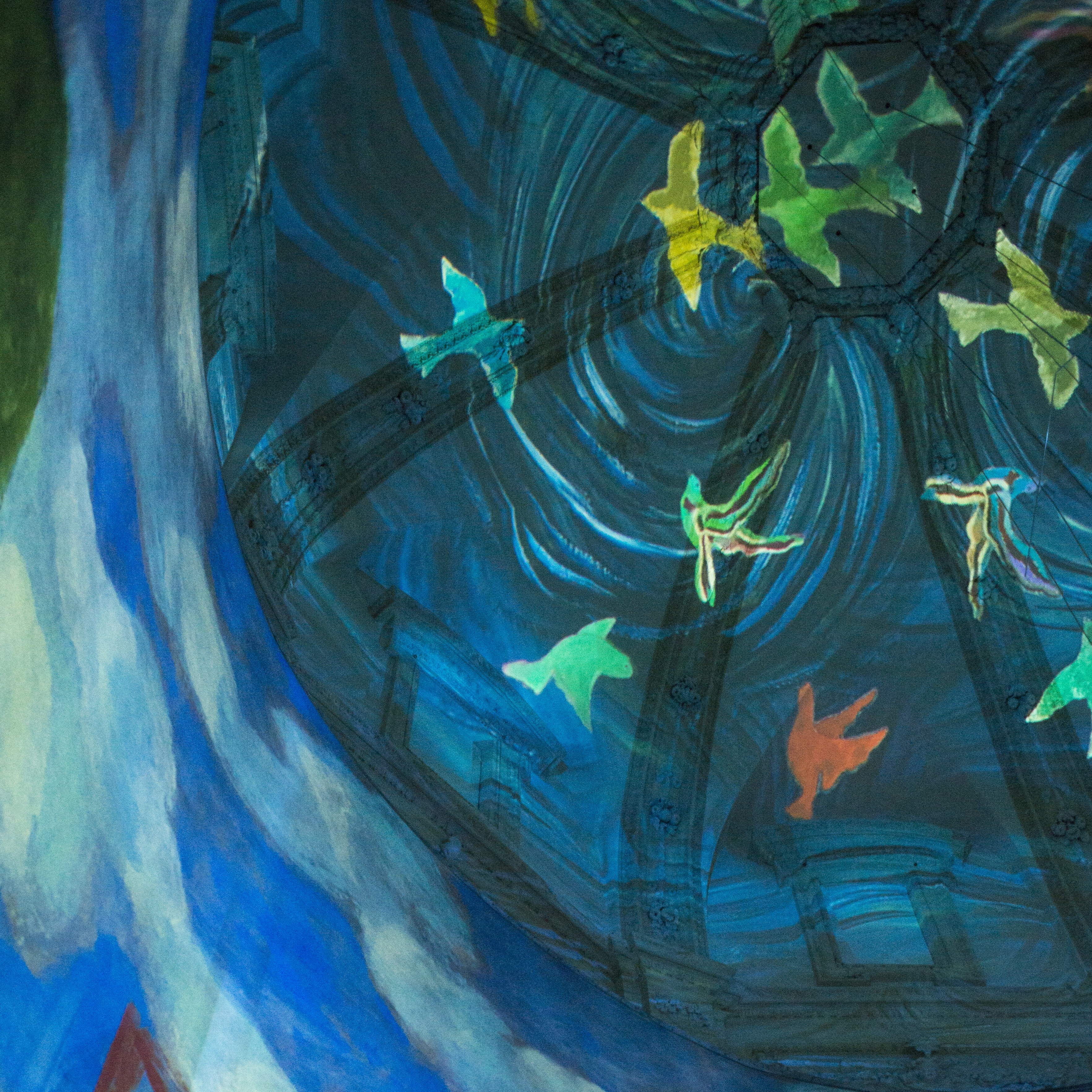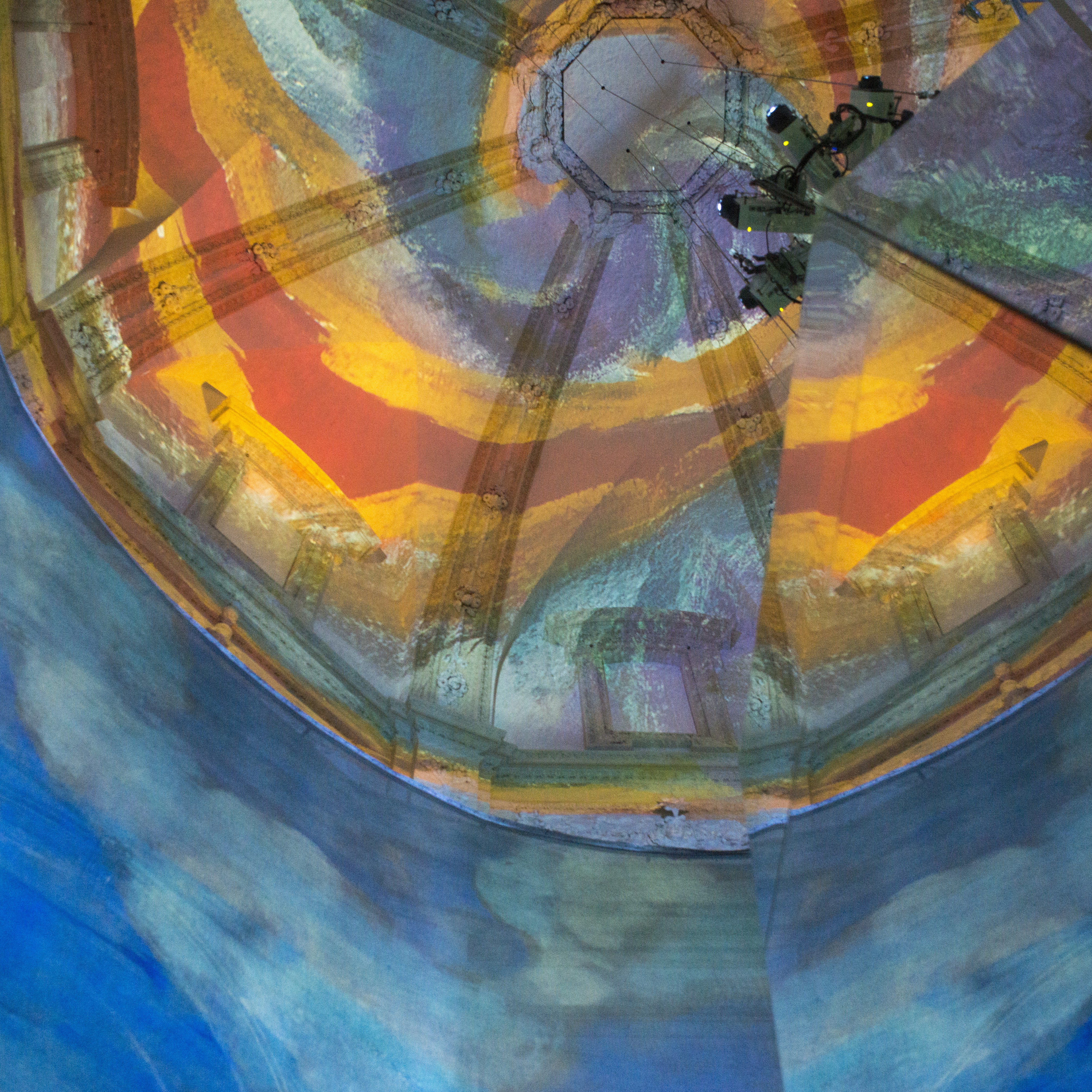 Genesi 2017 è il titolo della videoinstallazione che Sandro Chia ha realizzato sulla volta dell’ex Battistero della Manna d’Oro, per ricreare una immaginifica Genesi attraverso il susseguirsi di immagini pittoriche che si dissolvono in rapidi passaggi l’una nell’altra, come metafora visiva della continua dissoluzione e rinascita nel ciclo dell’infinito. Una Genesi che riprende l’immagine biblica della Bereshit, Il Principio, in cui il caos primordiale viene ordinato dal soffio dello Spirito divino. Sulla volta della Manna d’Oro, come nell’evocazione di una nuova cappella Sistina, si dispiegano le immagini, ripartite nella classica geometria della cupola tra le spartizioni delle vele e il nastro di un fregio. La narrazione di Chia racconta l’inizio del cosmo generatosi dal magma dell’indefinito: l’evoluzione del Creato e il destino degli Astri, delle Lune e delle miriadi di Soli che furono sparsi nel caos, in un rinnovarsi che tende a non esaurirsi mai come il Big Bang, che con la sua eco incessante continua a riverberare con l’espandersi dell’universo.