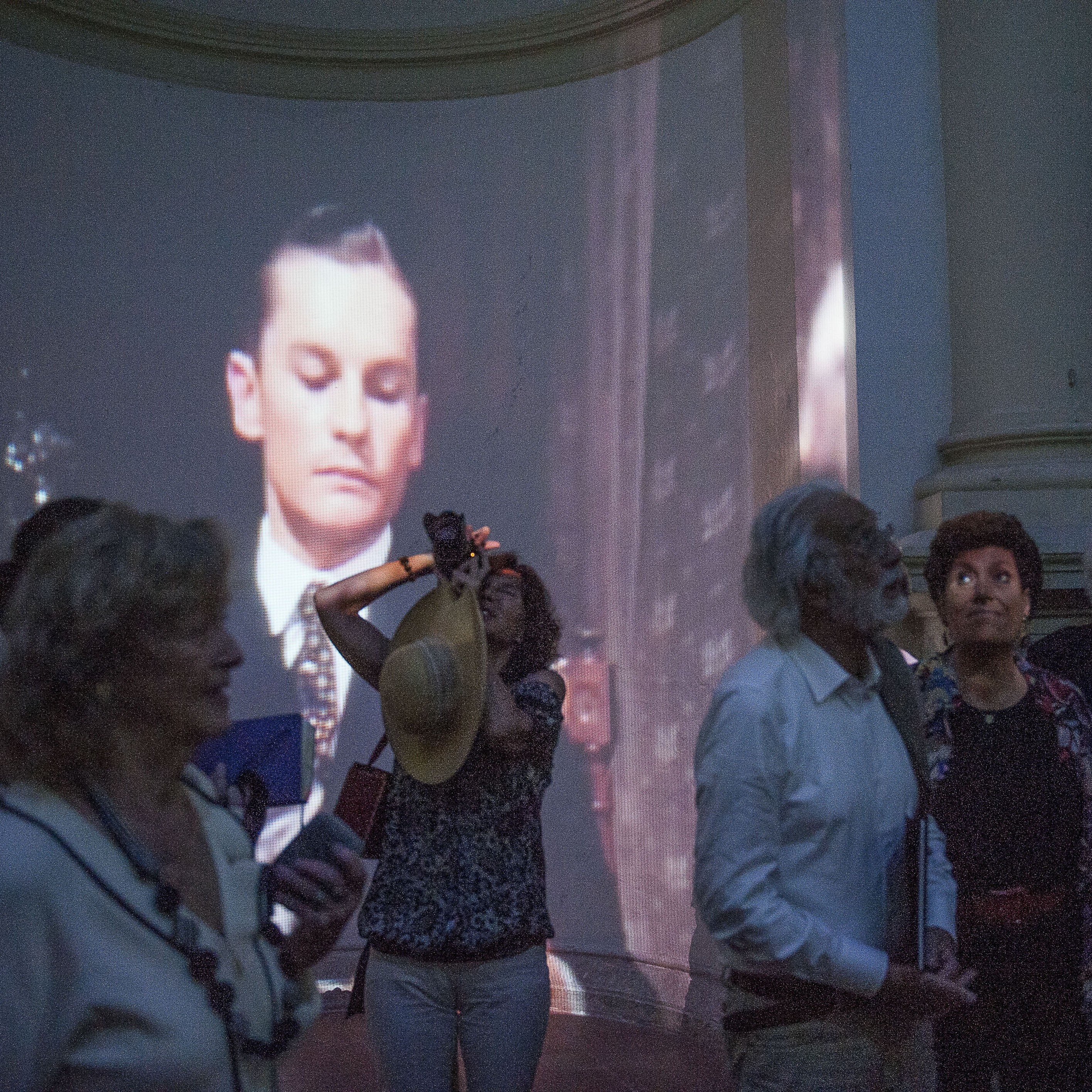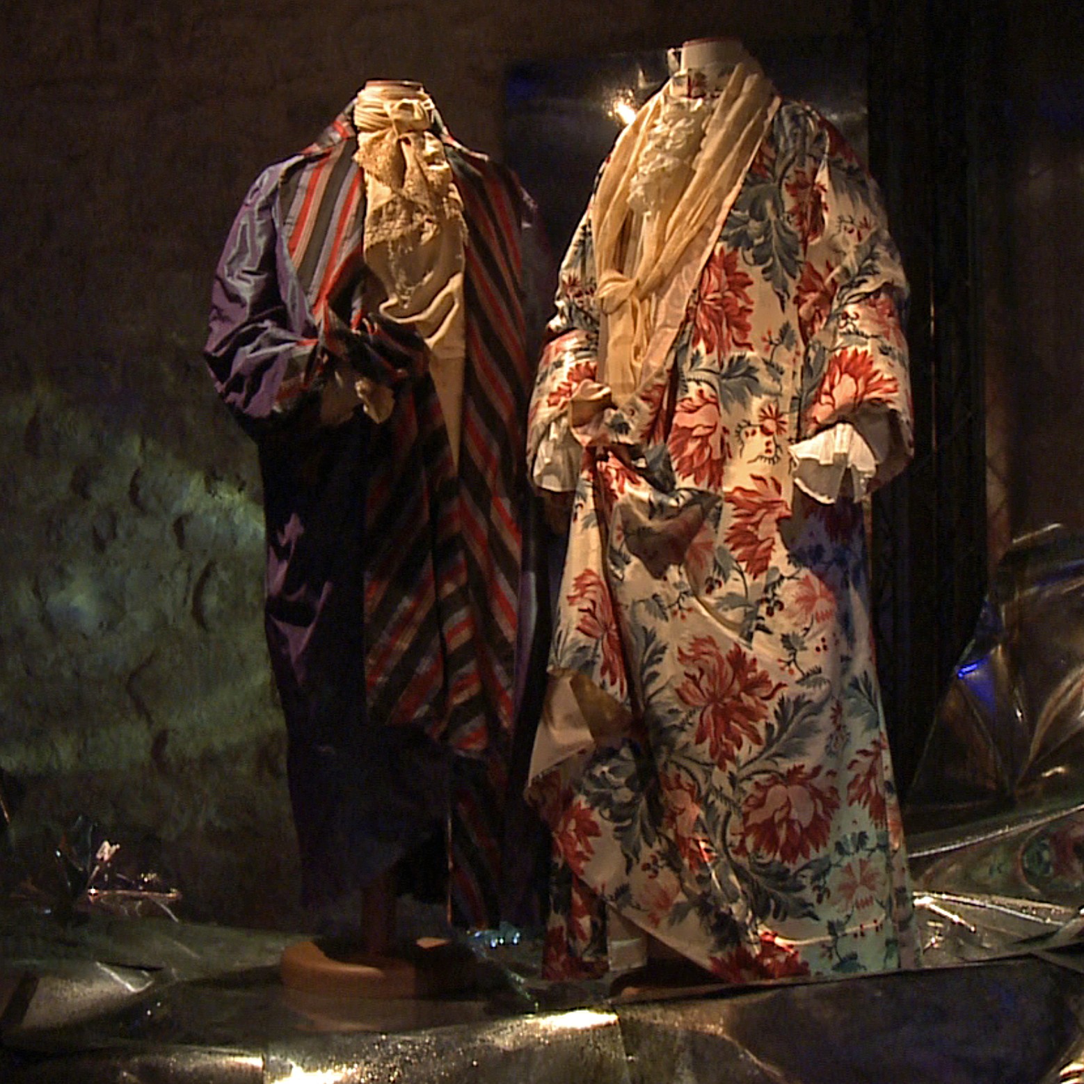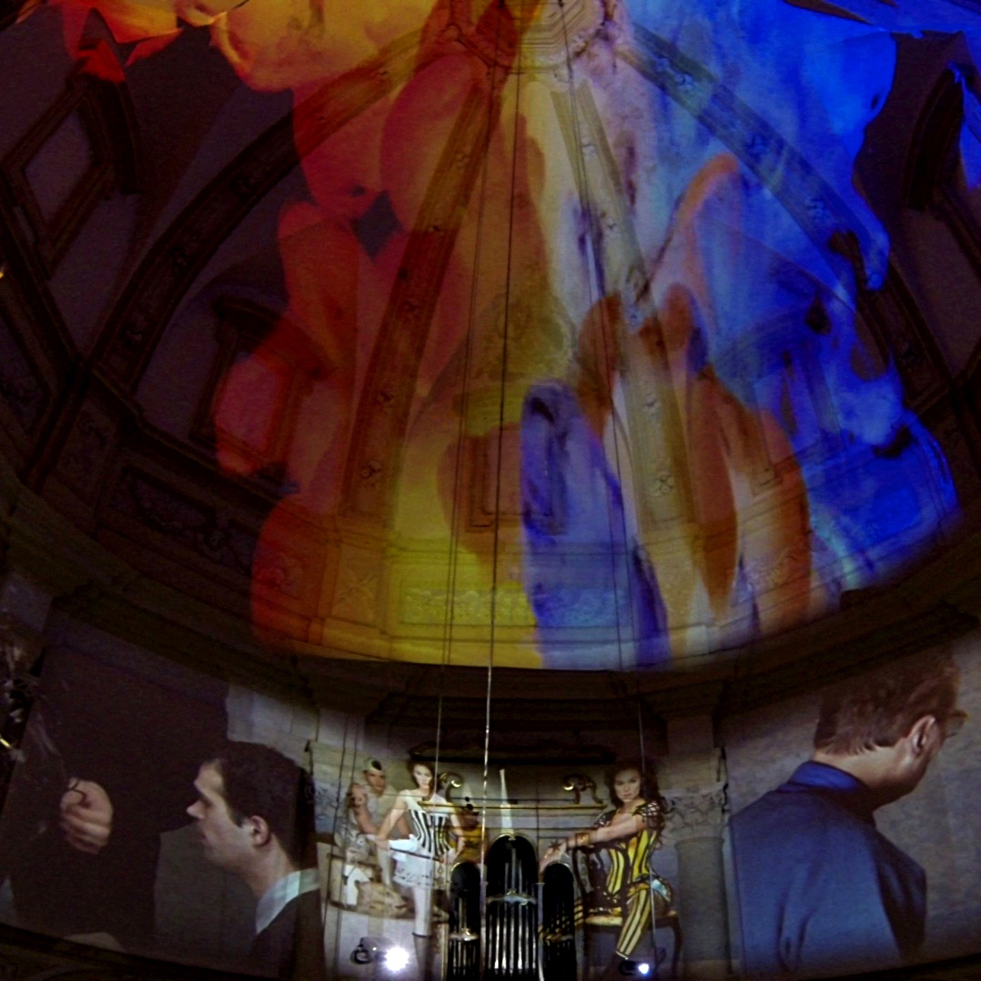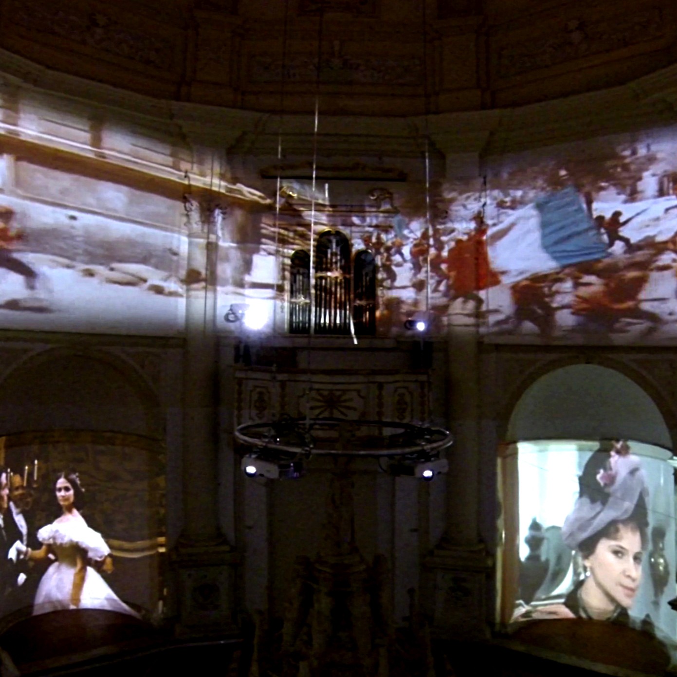 Piero Tosi e il cinema è la prima delle due installazioni a lui dedicate, allestita nell’ex Battistero della Manna d’Oro. Uno spazio con l’aura particolare della sacralità trasformato in una sorta di lanterna magica: sulla volta scorrono le proiezioni ingigantite di immagini e filmati d’epoca, musiche e video si alternano sui muri, sovrapponendosi e integrandosi con i particolari architettonici del luogo. Con gli occhi rivolti in alto lo spettatore è immerso in un ambiente onirico in cui si muovono i personaggi a cui Tosi ha dato identità con i suoi costumi, indossati da leggende del cinema come Burt Lancaster, Silvana Mangano, Claudia Cardinale, Alain Delon, Sofia Loren, Marcello Mastroianni, Anna Magnani, Dick Bogarde, Isabelle Huppert, Charlotte Rampling, Maria Callas, Helmut Berger.