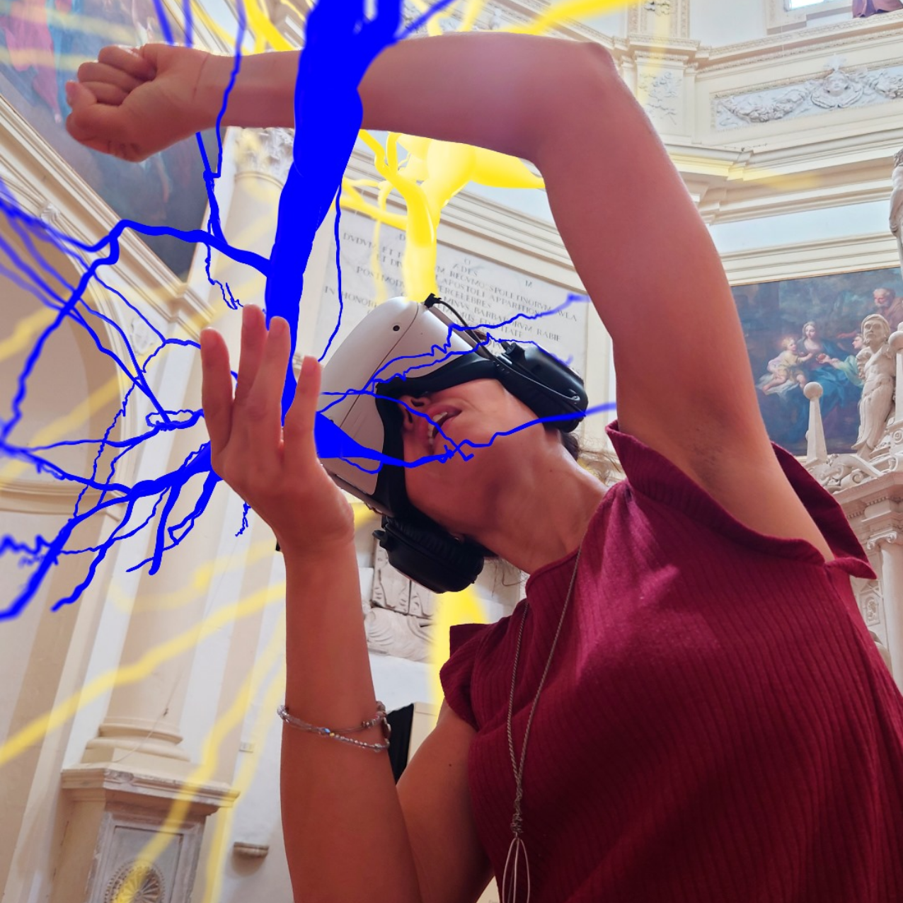 REALITY? è un’installazione immersiva in realtà aumentata di Gabriele Gianni che indaga l'incontro tra umano e virtuale, tra realtà e finzione, tra spiritualità e cultura digitale. Nell'ex Battistero della Manna d'Oro, dopo aver indossato dei visori per la realtà aumentata, il visitatore camminerà nella chiesa tra marmi e stucchi entrando in contatto con strutture tridimensionali sospese. Scansioni reali di neuroni umani ingranditi milioni di volte che toccati libereranno messaggi sonori, ricordi, voci, pensieri. Quando il visitatore si sentirà pronto a terminare la sua esperienza, in un gesto simbolico porrà le mani sulla fonte battesimale e la realtà della Manna D’Oro muterà, inghiottita da un buio virtuale. REALITY? è il tentativo di usare la tecnologia per porre domande profonde; come spiega il regista, “nasce dalla volontà di sollecitare il visitatore a porsi la domanda su cosa sia la realtà. Siamo sicuri, infatti, che non sia anch’essa un’illusione? L’opera non intende dare risposte, piuttosto porre questa domanda universale, utilizzando la tecnologia nella maniera più disturbante e straniante”.