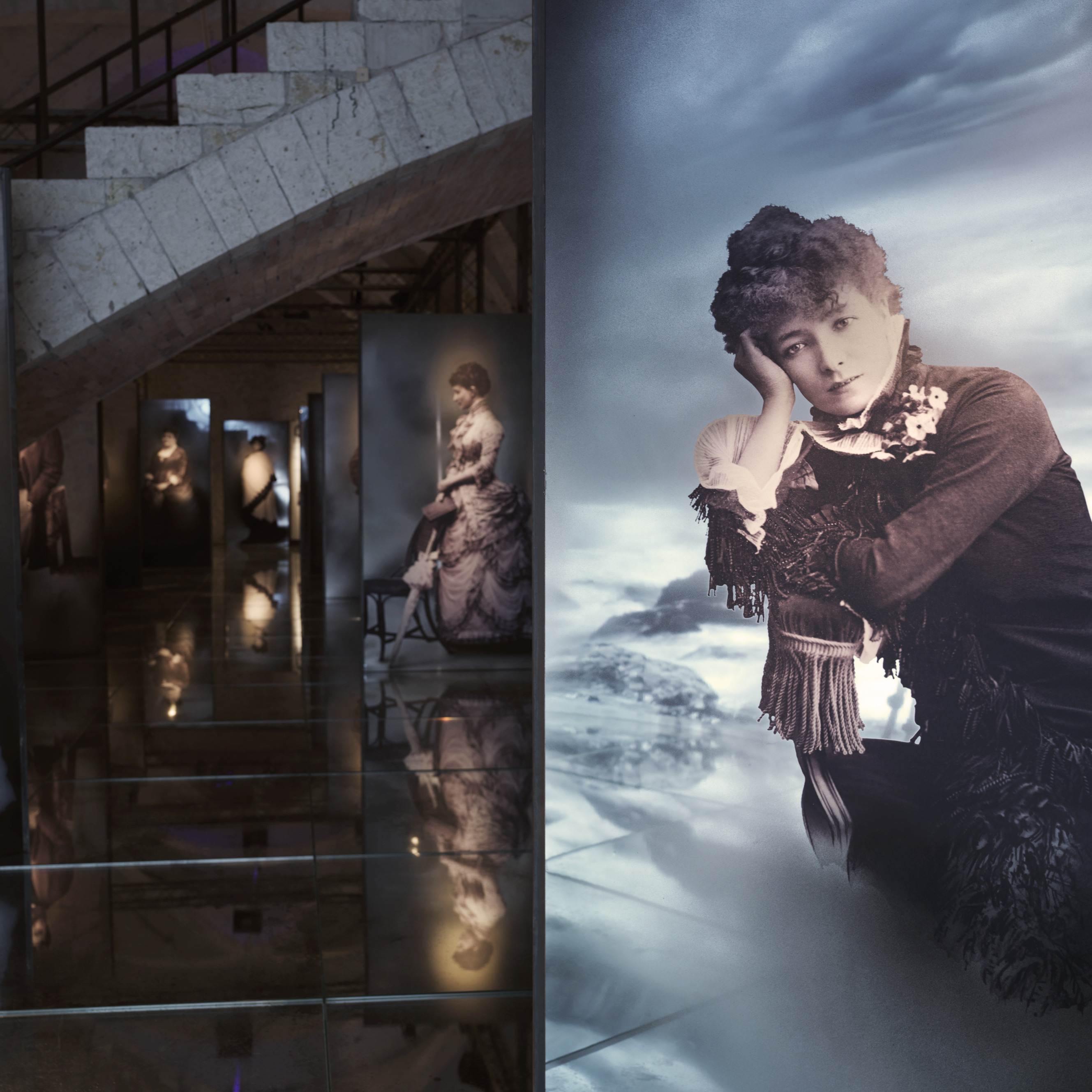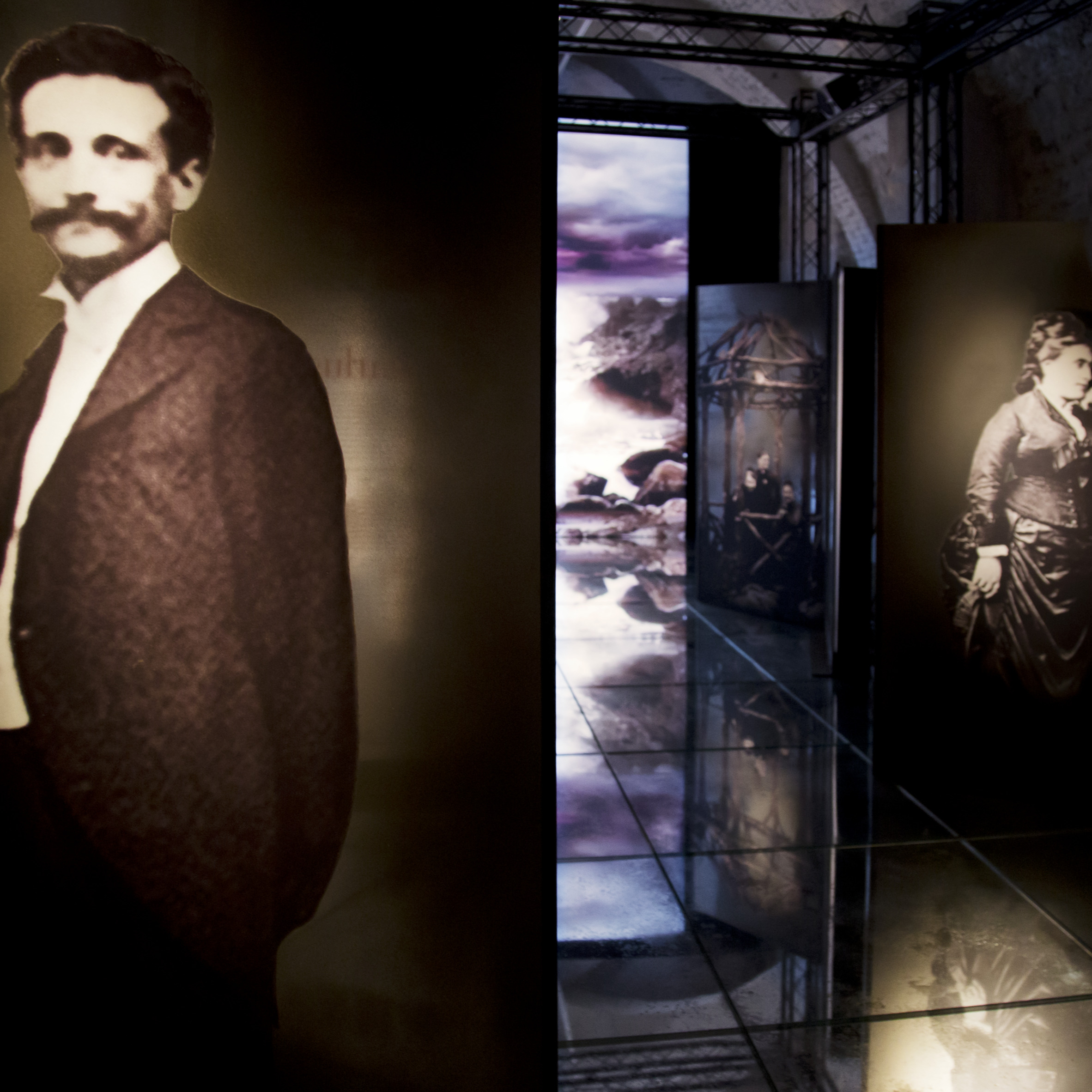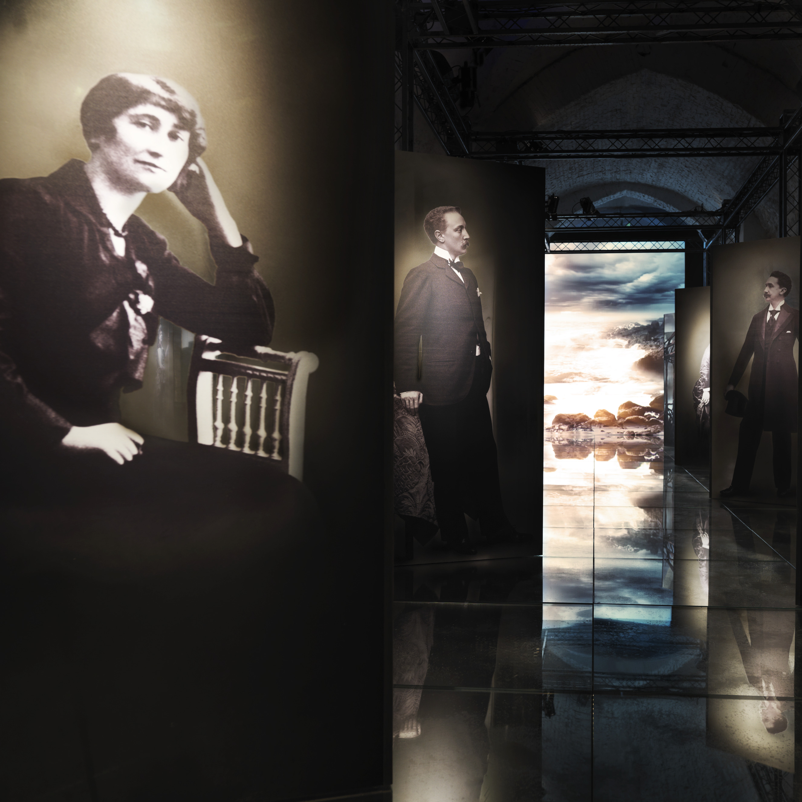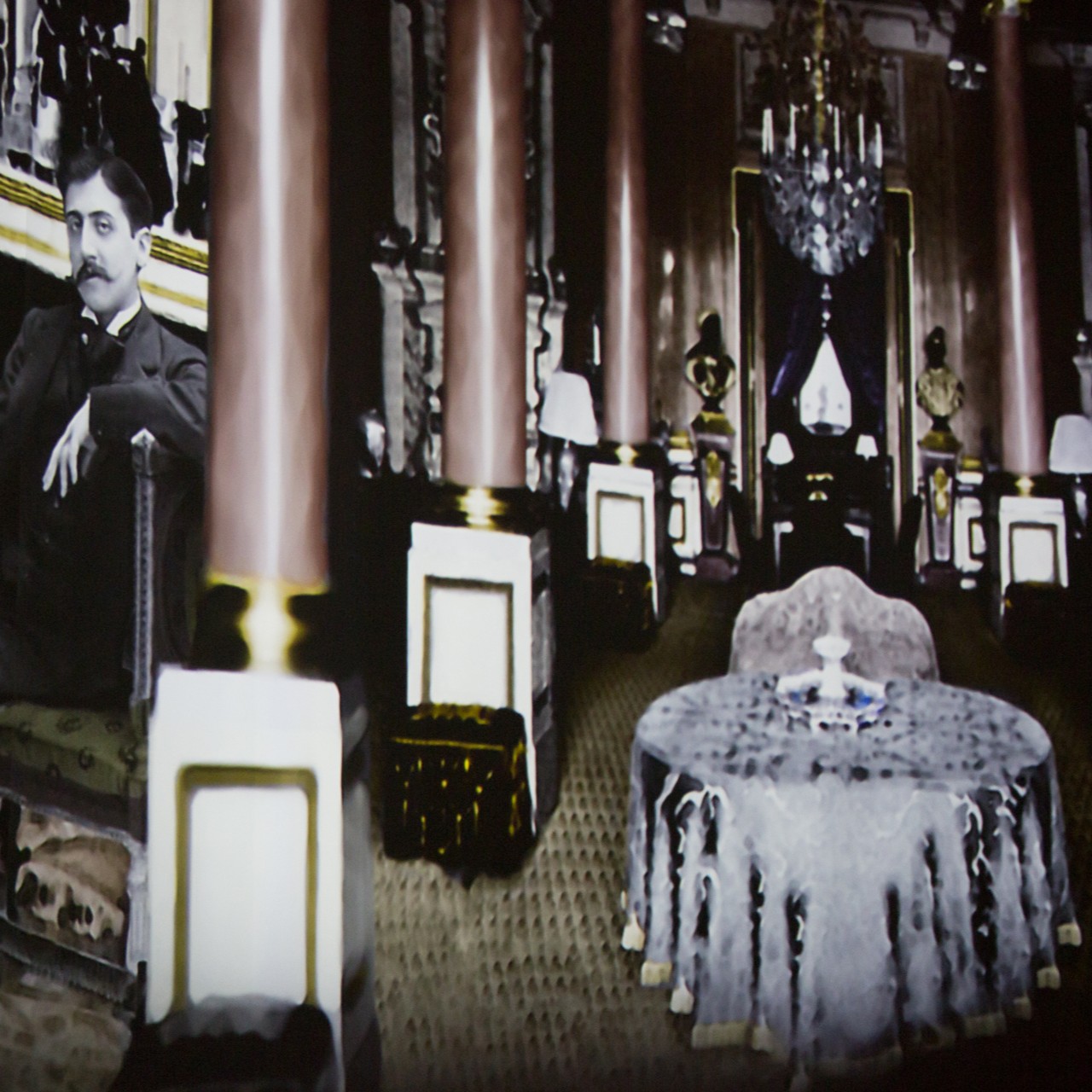 La peculiarità e il valore storiografico e artistico del materiale riportato alla luce sono subito apparsi di così alto interesse che è immediatamente nata l’idea di portarlo alla visibilità del pubblico. Sulle pareti dell’ex Battistero della Manna d’Oro sono stati proiettati paesaggi e interni che Visconti aveva studiato per rappresentare quelli presenti nel libro. I luoghi selezionati dal regista hanno riempito le superfici su una colonna sonora ricreata a partire da autori del tempo proustiano. All’interno dell’ex Museo Civico sono stati riuniti invece tutti i personaggi del romanzo, a grandezza naturale e identificati utilizzando le foto d’epoca dello studio Nadar, che erano stati i loro autentici modelli. A completare la suggestione il mare di Balbec, che con onde realistiche si infrangeva su un pavimento di specchi dove poggiavano i piedi le “fanciulle in fiore.”