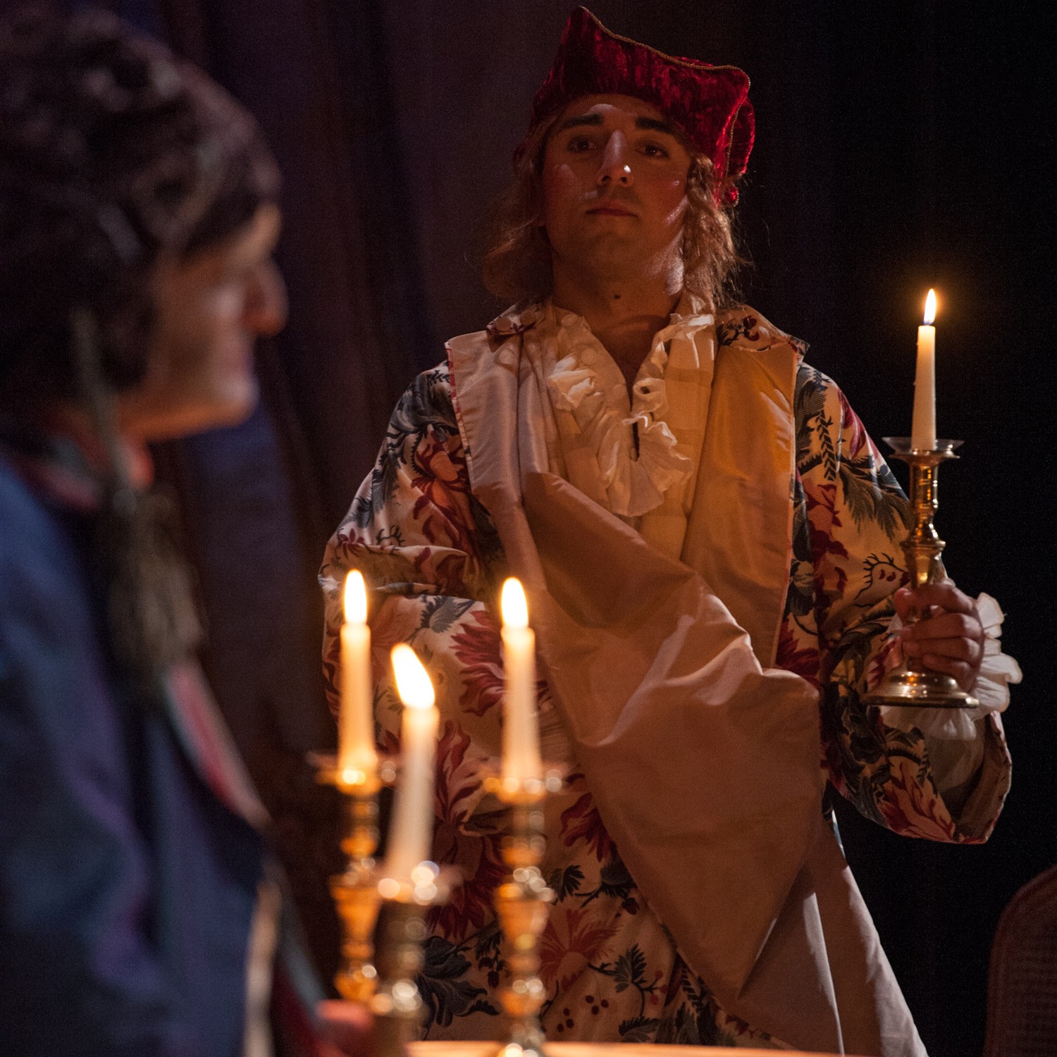 For the 56th edition of the Spoleto Festival, the Carla Fendi Foundation welcomed the collaboration proposal from Artistic Director Giorgio Ferrara, contributing to the staging of Il matrimonio segreto, the 1792 dramma giocoso by Domenico Cimarosa. The production was the occasion to return to the public the celebrated “rich scene” painted by Domenico Bruschi, which the meticulous restoration work on the Caio Melisso Theatre, initiated by the Foundation in 2010, brought back to its original magnificence. In honour of its patron, the theatre has been renamed Caio Melisso Carla Fendi Theatre. The opera was conducted by the English maestro Ivor Bolton with the orchestra of the Petruzzelli theatre of Bari, while the production featured sets and direction by Quirino Conti. The costumes were designed by Academy Award–winner Piero Tosi, crafted by the renowned Tirelli atelier with the support of the Carla Fendi Foundation and are now part of the Historic Collection of the atelier.