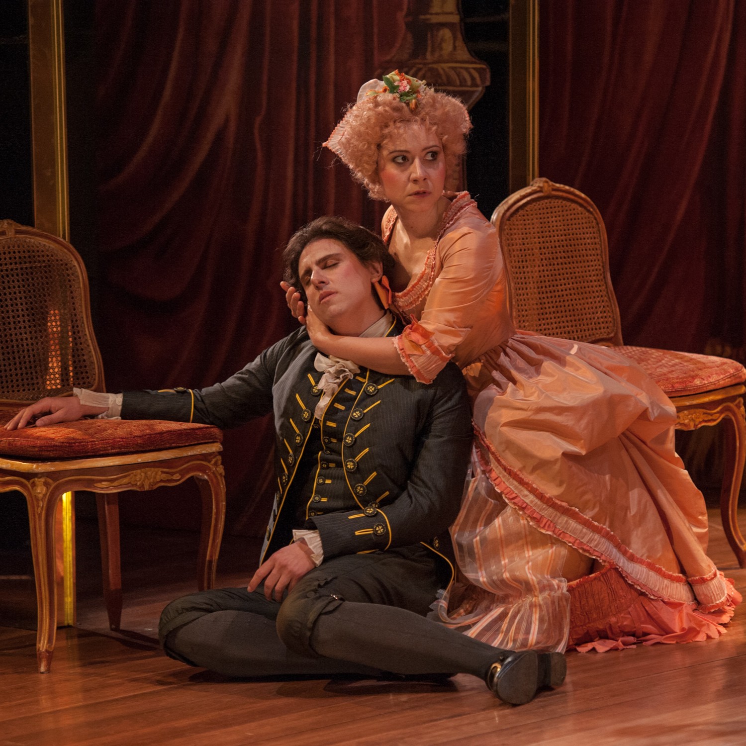In the libretto by Giovanni Bertati, the action is set in Bologna and revolves around Don Geronimo’s desire to marry off his eldest daughter, Elisetta, to her betrothed, Count Robinson. However, upon arriving at his future father-in-law’s home, the Count immediately falls in love with Elisetta’s younger sister, Carolina, and becomes determined to break his promise in order to marry her instead. But Carolina has already secretly married Paolino, Don Geronimo’s assistant, despite their difference in social rank. Amid quarrels, bickering, envy, and intrigue — also involving the sisters’ aunt, Fidalma — the lighthearted plot concludes happily. Cimarosa’s lively eighteenth century was brought to life by Tosi through a vibrant palette of pastel-coloured bodices, dressing gowns with floral patterns, and elaborate hairstyles, all of which, set within the theatre’s jewel-like interior and its richly adorned stage contributed to the opera’s vivacity and charm. Now a classic of opera buffa, it is said that at its premiere Emperor Leopold II was so delighted with Il matrimonio segreto that he requested it be performed again the very same evening.