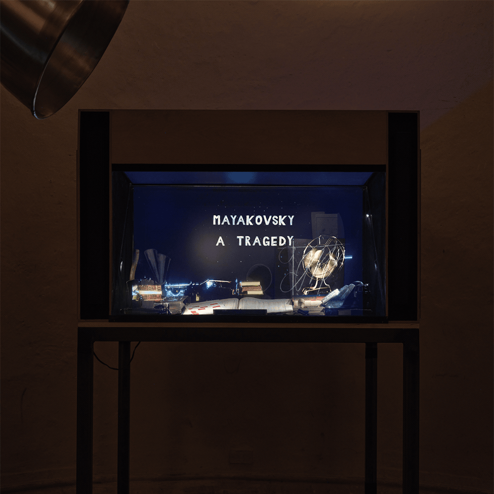 William Kentridge employs Pepper’s Ghost in an experimental version of the avant-garde tragedy Mayakovsky, in which text and performance are paired with his drawings and animations. It is a meditation on the performativity of prose and the use of language as a balm (or a form of satire) in how we go about the act of living today.