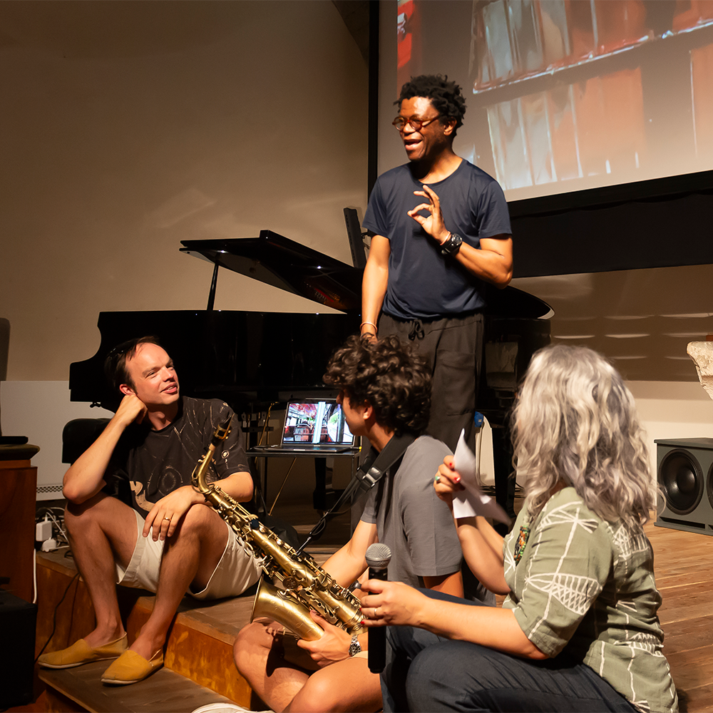 Sounding Pictures - live scores to short silent films was the second workshop in the program. The starting point was: how is the narrative of a silent film influenced when, in a collaborative setting, artists respond live with sound, performance, and improvised texts? The workshop answered by using contemporary silent short films, with which participants interacted telepathically with one another to create spontaneous soundtracks and original narratives, focusing on the dramaturgy of sound. The workshop involved composers, musicians, sound artists, filmmakers, as well as curators, researchers, and students working with film.