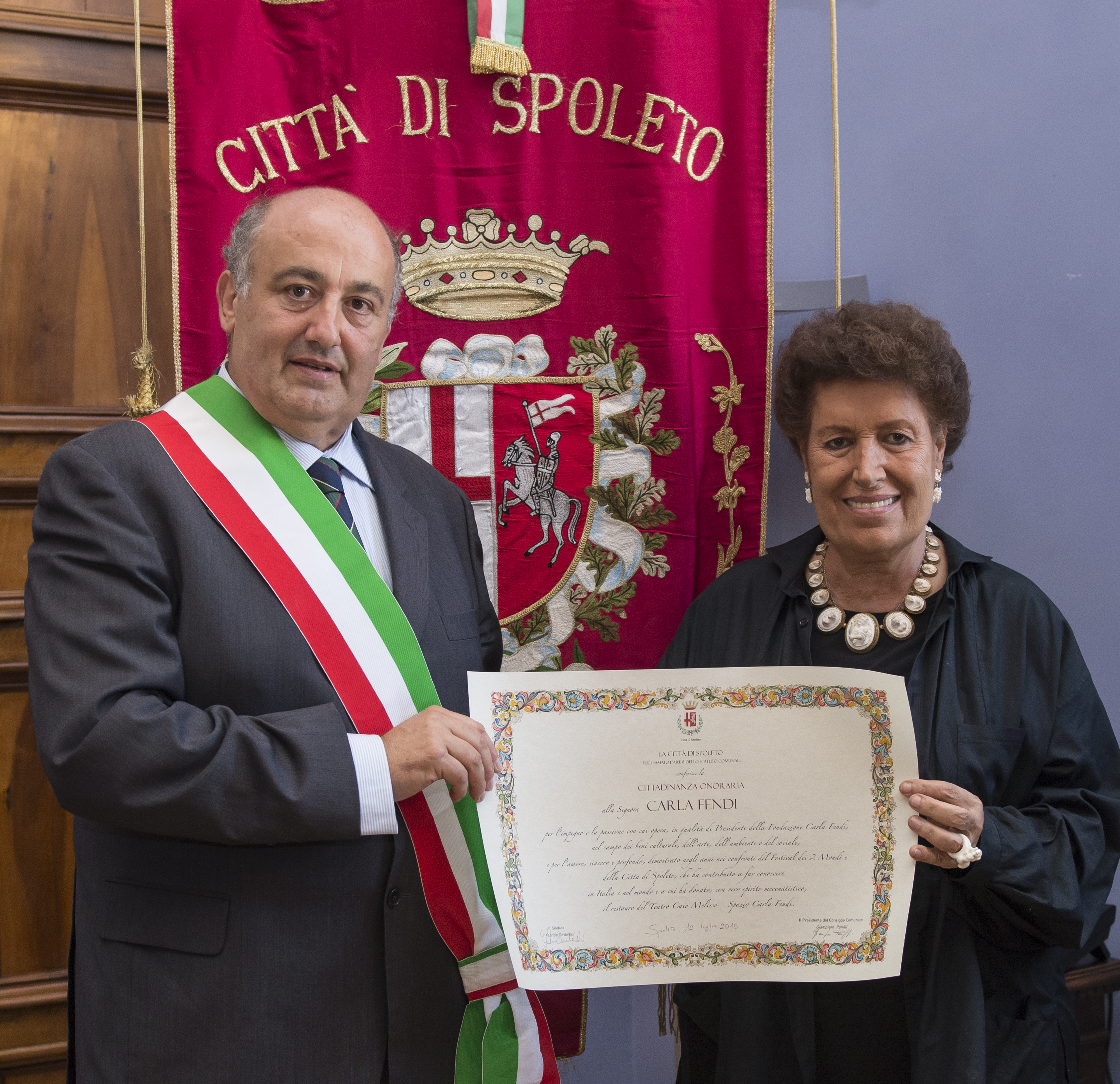 Carla Fendi’s relationship with the city of Spoleto began long before the establishment of the Foundation that bears her name. From the very early years of the Festival of Two Worlds, the Umbrian town became a place of deep personal attachment for Carla Fendi. The creation of the Foundation in 2008 transformed this personal bond into a long-standing collaboration with the Festival, further strengthening the founder’s emotional ties to the territory. This commitment took concrete form in the five-year restoration of the historic Caio Melisso Theatre. In 2015, the Foundation was able to return this building of great historical and artistic significance to the city, making it once again available for the many theatrical and musical events. In recognition of this act of patronage, the Municipality of Spoleto awarded Carla Fendi honorary citizenship and renamed the Caio Melisso Carla Fendi Theatre. Carla Fendi’s deep and continuous involvement with Spoleto and its Festival led to her appointment in 2012 to the Board of Directors of the Festival of Two Worlds as a representative of the Italian Ministry of Cultural. Following her passing, this position was assumed by Maria Teresa Venturini Fendi in her role as President of the Carla Fendi Foundation.